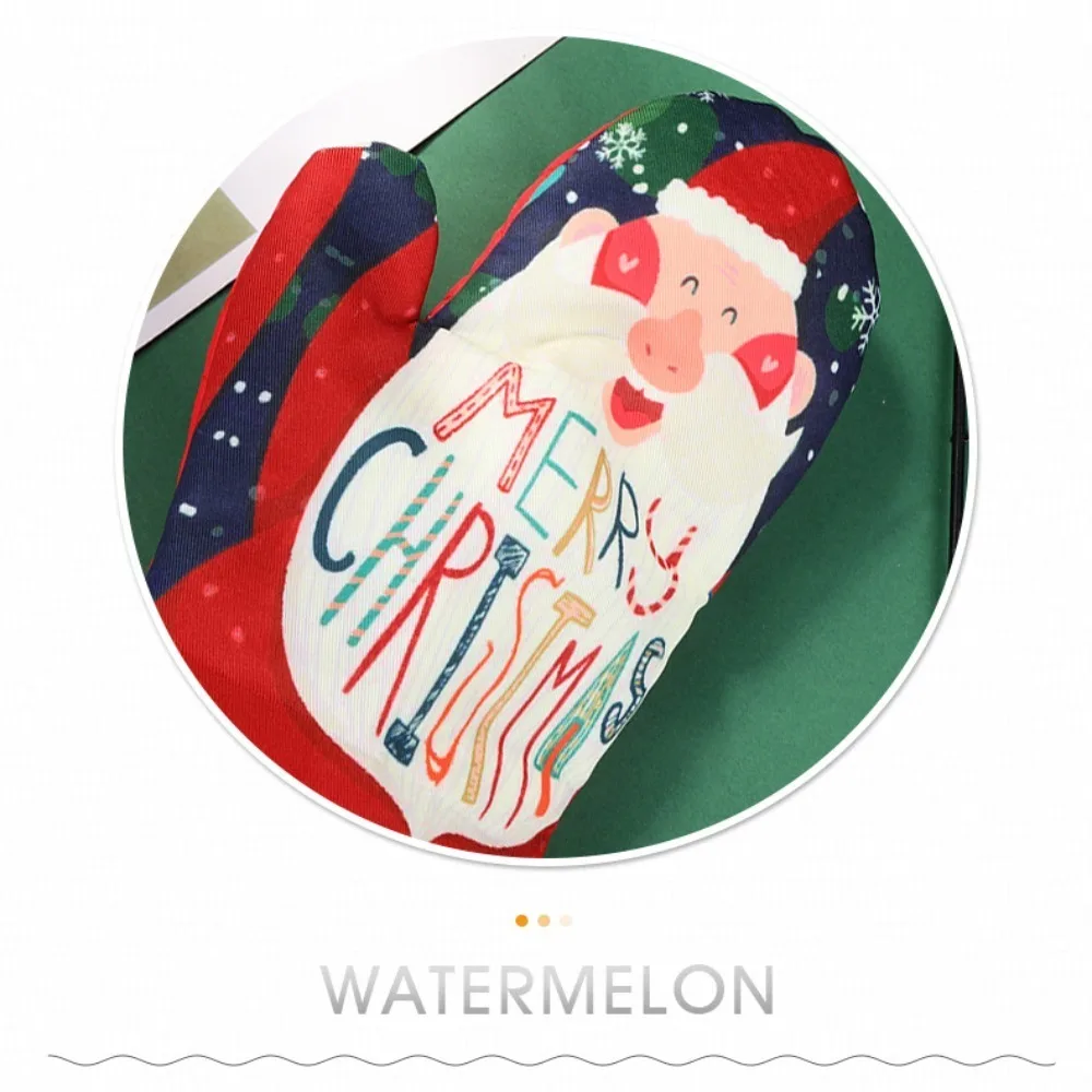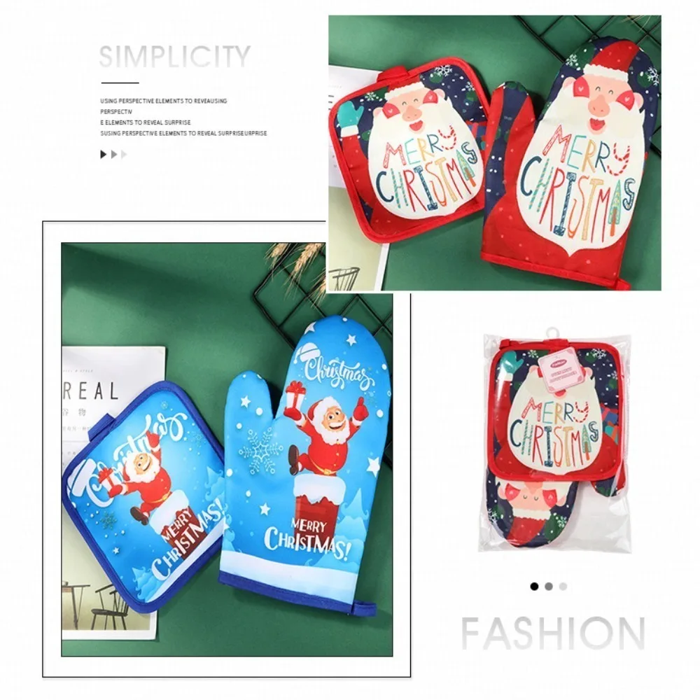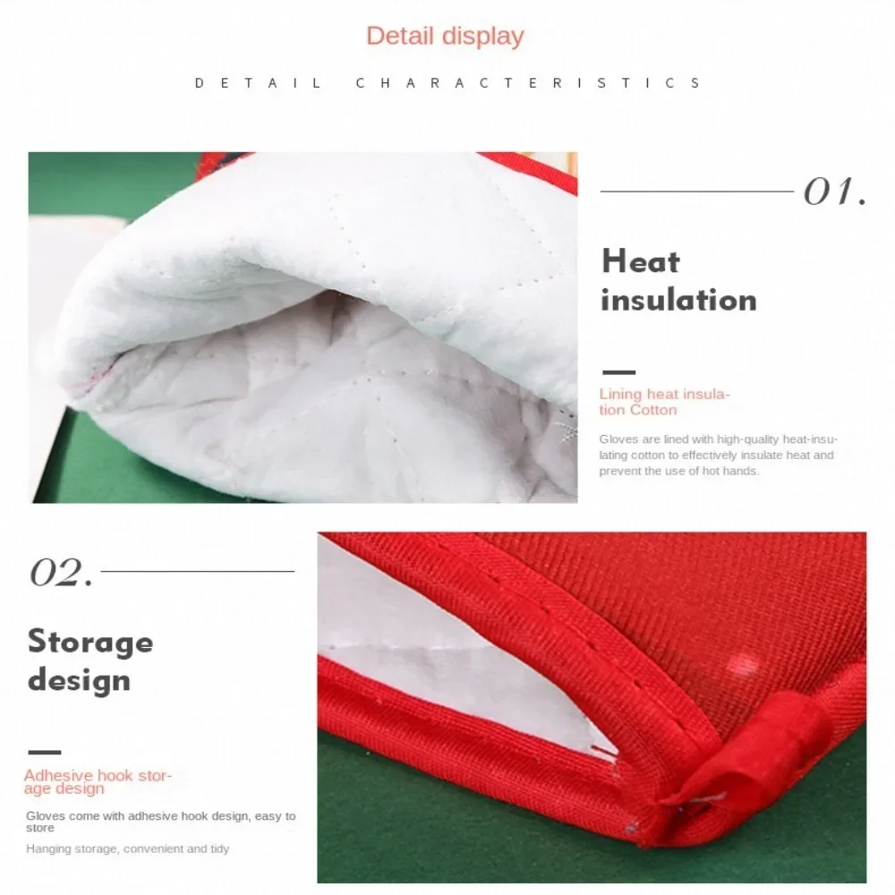 Kitchen Accessaries Heat Resistant Christmas Trim Oven Mitts Cotton Baking Microwave Gloves Anti-Hot Mat Baking Insulated Gloves
